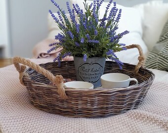Paper, wicker, coffee table tray, round wicker tray, dark beige.